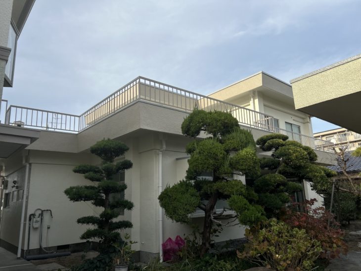 | お客様のご要望 | ベランダから雨漏りが発生しており、弊社にお問い合わせ頂きました。ベランダと屋上防水は完全止水、外壁は前回の塗装工事から20年程経っているので適切な施工での塗装工事、既存の雨樋は全て撤去し新設の雨樋の設置、膨れている外壁を綺麗にしたいということでした。 |