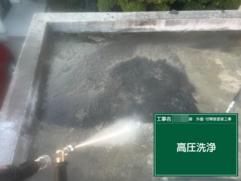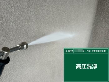 施工中のお写真です。高圧洗浄をしてヨゴレを落としています。
