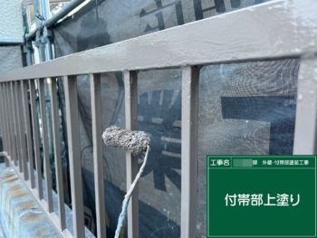 外壁を上塗りしている様子です。職人が丁寧に施工していきます。
