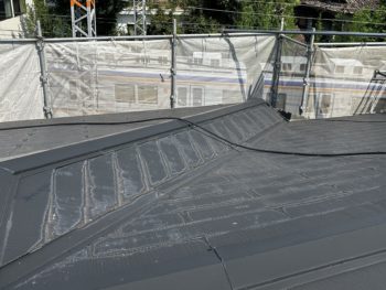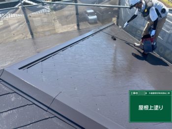 屋根もしっかり上塗りしていきます。屋根には耐久性のあるシリコン塗料を使用しています。