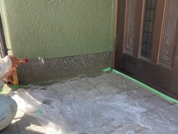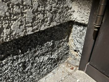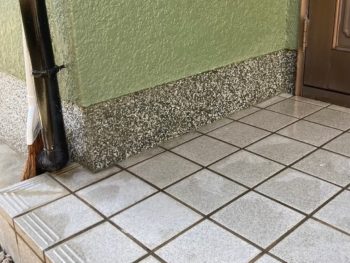 洗い出し仕上げの基礎巾木は手で触ると蛇紋寒水がポロポロと落ちてくる状態でした。