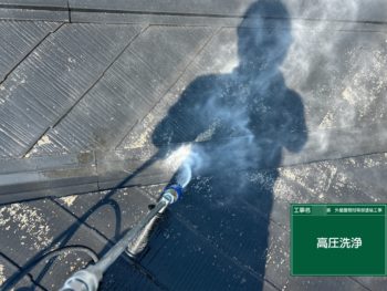 屋根も高圧洗浄して表面のヨゴレを落としていきます。