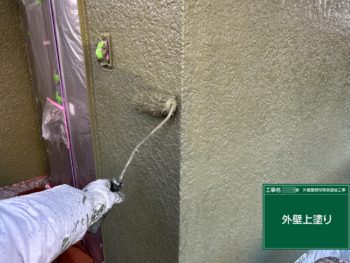 外壁を対候性の高い無機塗料で上塗りしていきます。