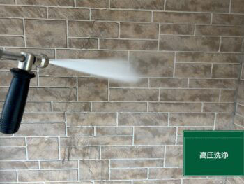 施工中のお写真です。高圧洗浄をして汚れを落としています。