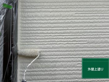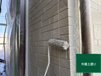 外壁を上塗りしている様子です。職人が丁寧に施工していきます。