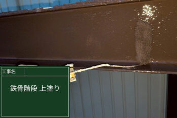 鉄骨階段は外気に晒され登り降りも毎日されるため丁寧に下処理・塗装を行いました。