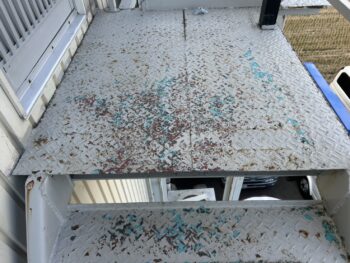 毎日登り降りする鉄骨階段はサビや剥がれが目立ちます。