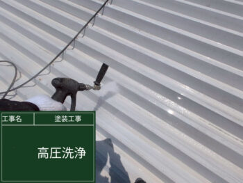 屋根にも高圧洗浄をかけ、汚れを落としていきます。