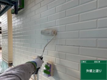 外壁の上塗りでは壁の隅々まで美しく塗り上げていきます。