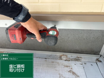 塩ビ鋼板を取り付けてより防水性を高めていきます。