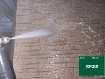 高圧洗浄を行い、外壁の汚れなどを落としていきます。