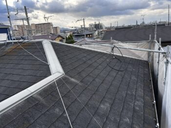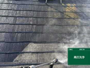 屋根も同様、高圧洗浄を施していきます。