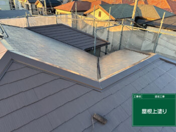 屋根も外壁同様、劣化を防ぐ塗料にて仕上げ塗りをしていきます。