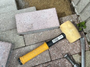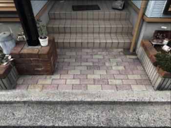 玄関アプローチの浸水したレンガを新しいものに交換しました。