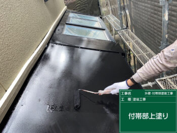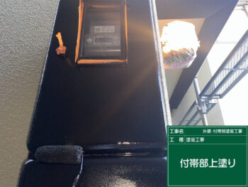 付帯部にも塗膜の密着性と耐久性を向上させるため均一に塗り進めます。